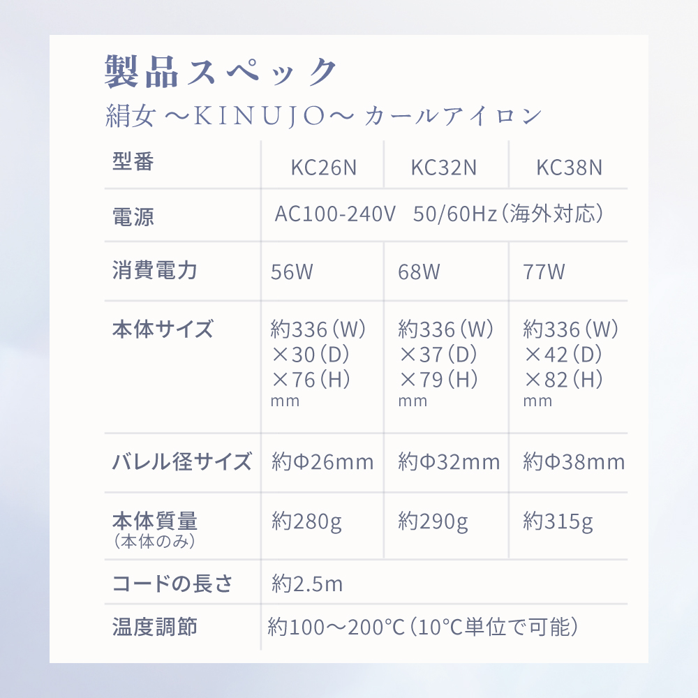「絹女-KINUJO- カールアイロン」は販売期間前です。