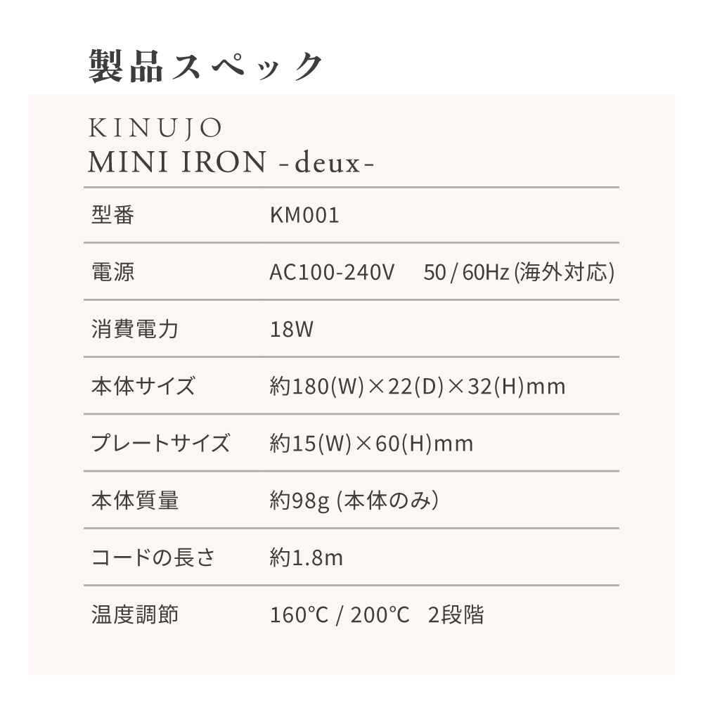 「KINUJO ミニアイロン -deux-」は販売期間前です。